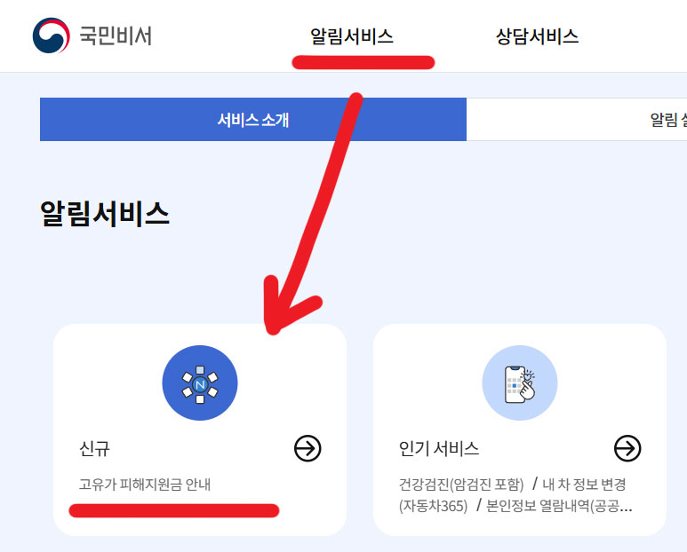 피해지원금 대장자 확인하기